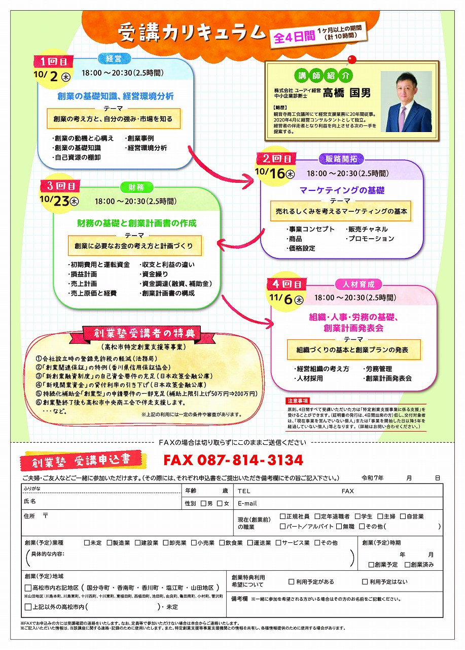 下記チラシ裏面の受講申込書に必要事項をご記入のうえ、FAX・郵送・商工会窓口へ