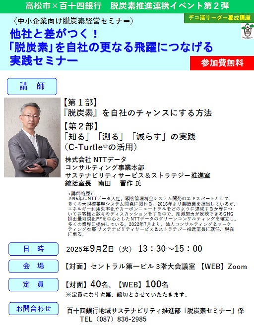 高松市と百十四銀行の共催で中小企業向けの脱炭素経営セミナーが