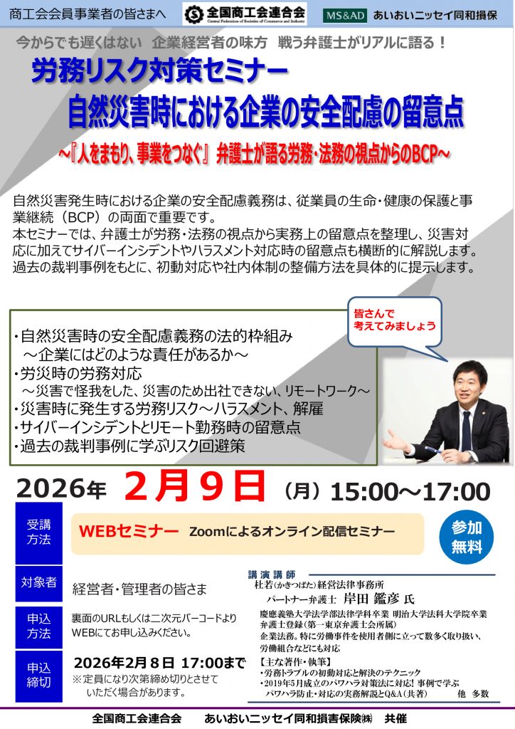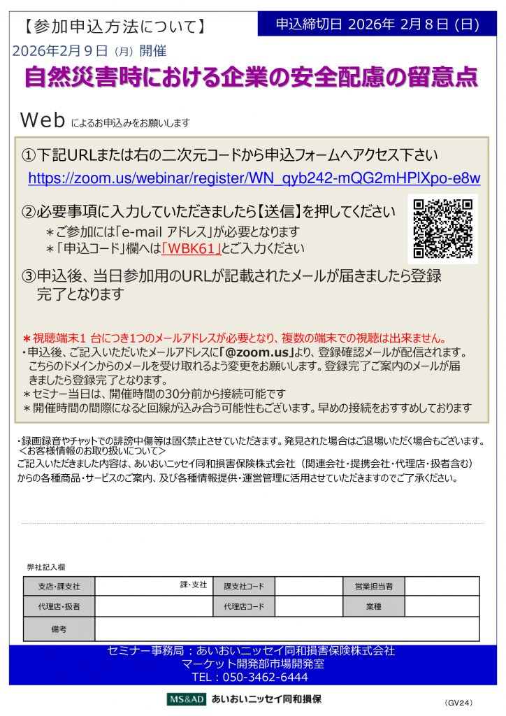 あいおいニッセイ同和損害保険㈱と連携したセミナーを実施致します。