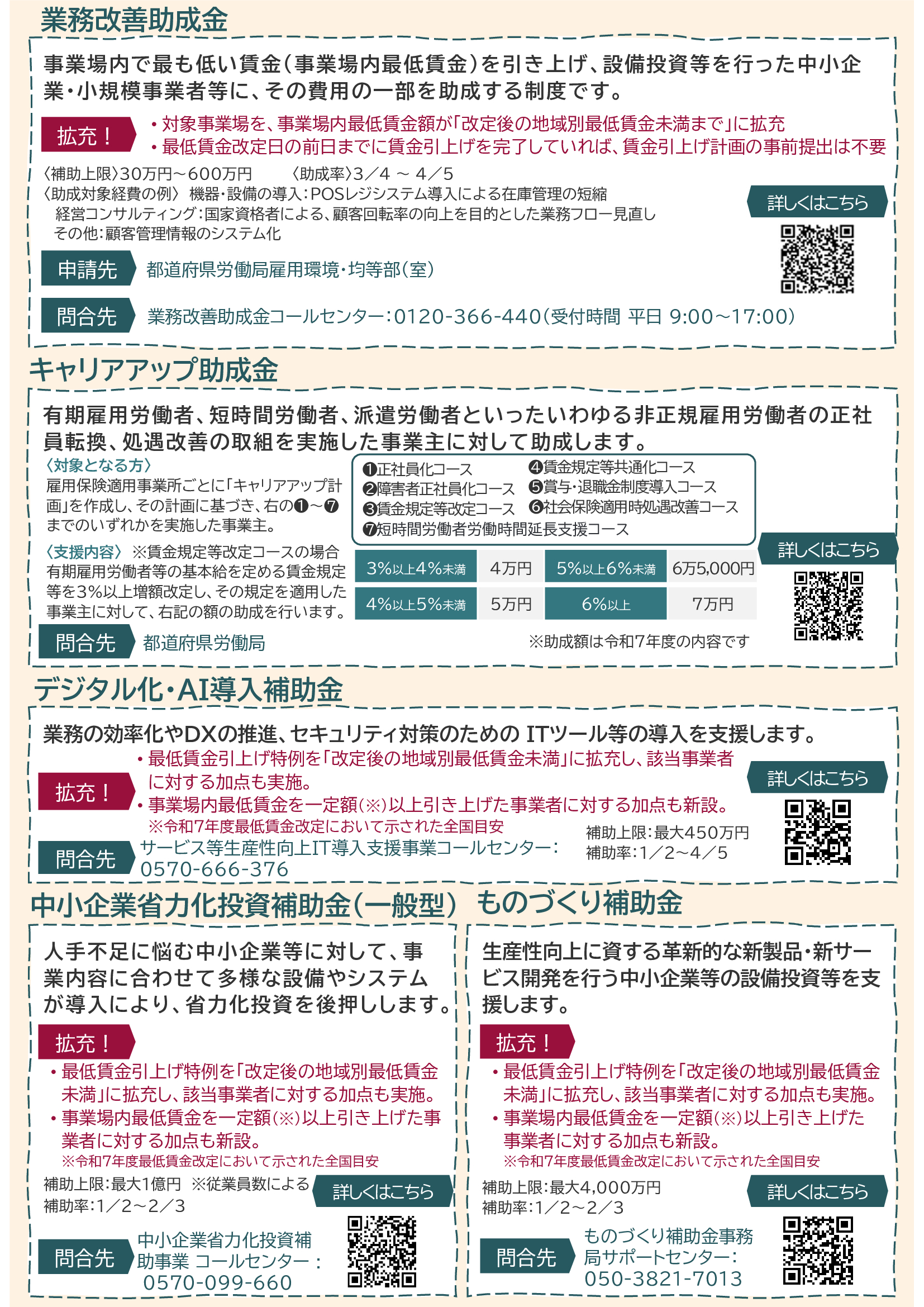 厚生労働省や中小企業庁が実施する賃上げに係る補助金・助成金の各種政策についてご紹介いたします。