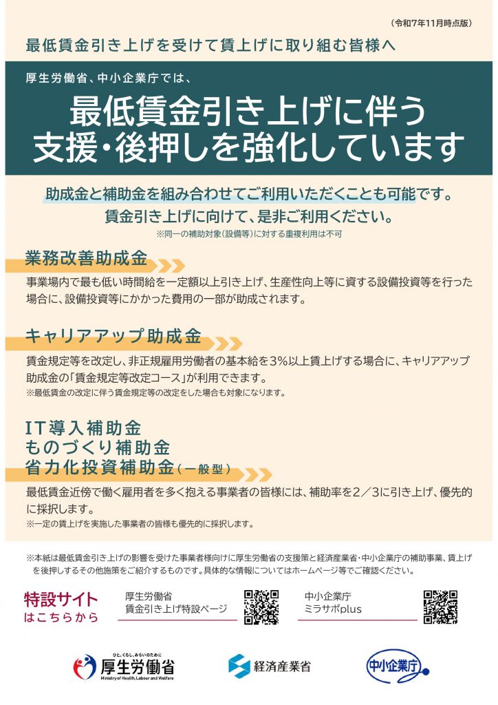 最低賃金引上げを受けて賃上げに取り組む皆様へ