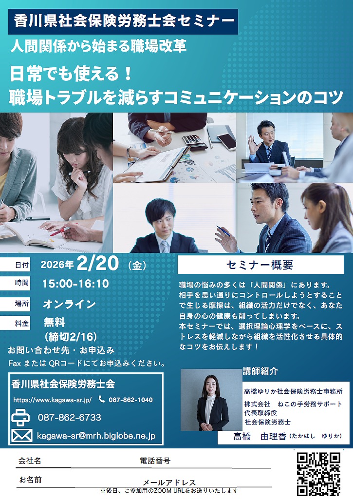 香川県社会保険労務士会よりセミナーのご案内がありました